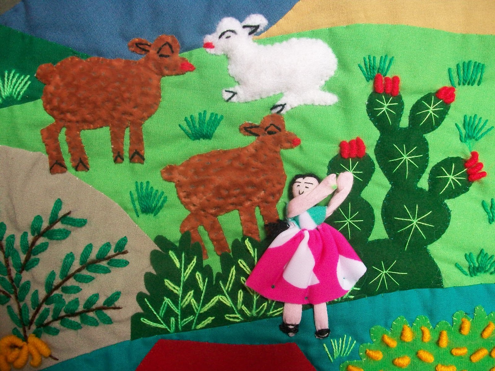| boceto: niñas, niños, cactus, vacas, retazos y lanitas |